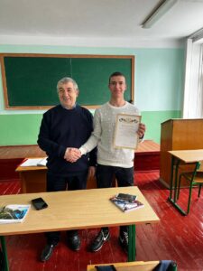 Романюка Андрія, здобувача першого (бакалаврського) рівня вищої освіти групи М1-В20. Тема наукового дослідження «Застосування теорії ігор в економіці». Науковий керівник – кандидат фізико-математичних наук, доцент, доцент кафедри математики, Ковальська І.Б.