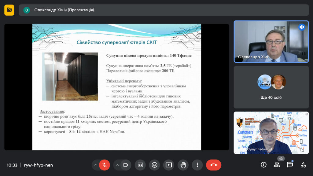 Після натхненної розповіді про найпотужніші суперкомп’ютери світу знаний український кібернетик ознайомив слухачів з напрямками застосування та унікальними можливостями вітчизняного суперкомп’ютерного обчислювального комплексу СКІТ.
