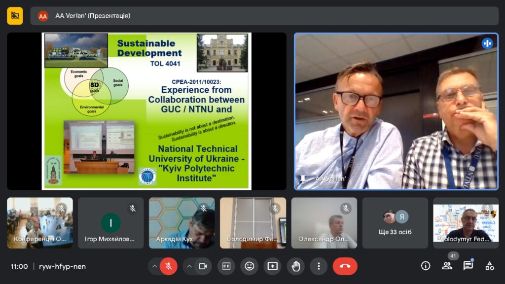 Далі естафету прийняли доповідачі, які озвучили результати своїх наукових досліджень у межах міжнародного співробітництва, – професори кафедри виробництва та цивільного будівництва Норвезького університету науки і технологій (місто Йовік, Норвегія) Ю Стертен (Jo Sterten) і Андрій Анатолійович Верлань (старший син А.Ф. Верланя), а також професор та завідувач кафедри автоматизації проєктування енергетичних процесів і систем Національного технічного університету України “Київський політехнічний інститут імені Ігоря Сікорського” Олександр Васильович Коваль. Учасники конференції дізналися про особливості організації міжнародного наукового співробітництва, а також про передове інтелектуальне мультиагентне середовище лабораторії розумної енергетики, яке наразі використовується для моделювання, проєктування і навчання інтелектуальних енергетичних систем.