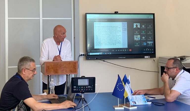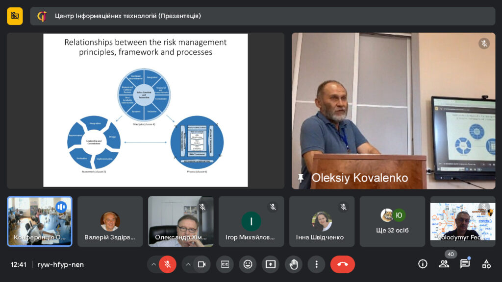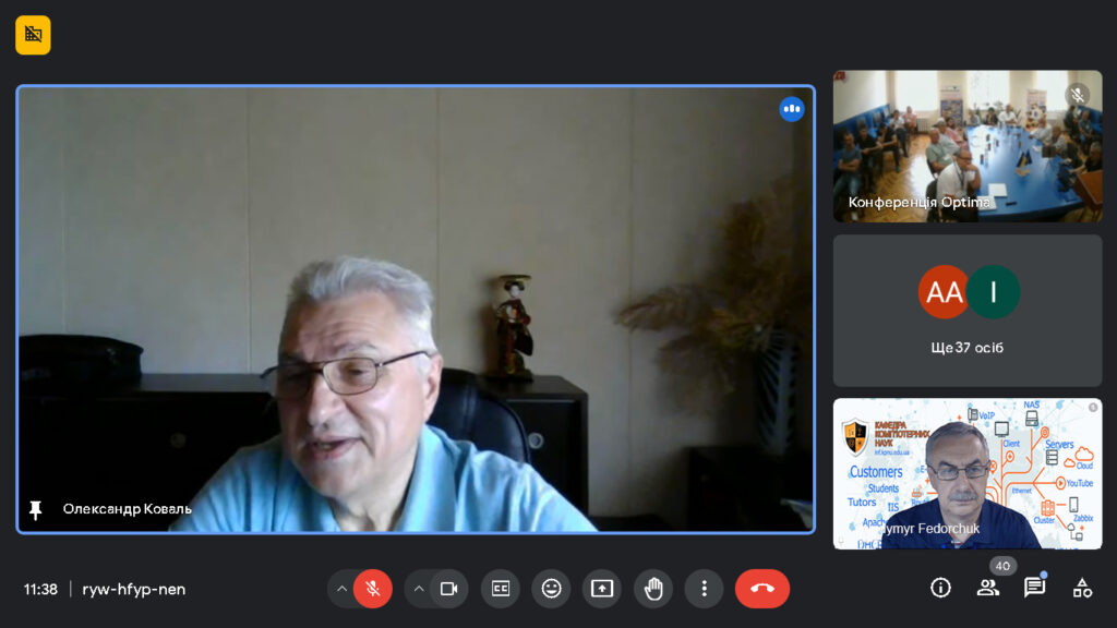 Наступний доповідач – професор кафедри комп’ютерних систем, мереж та кібербезпеки Національного університету біоресурсів і природокористування України Олексій Єпифанович Коваленко – поінформував наукове товариство, яке долучилося до конференції Optima-2024, про результати комплексного міжнародного проєкту по створенню архітектури конвергентної системи управління ризиками стихійних лих, в якій буде підтримуватися найбільш повне охоплення досліджуваних явищ і процесів, що відстежуються і реєструються сенсорними мережами, сучасними засобами аерокосмічних спостережень з урахуванням ослаблення сигналів хмарами, атмосферними газами тощо. До побудови цифрових двійників досліджуваних об’єктів і процесів, що стануть компонентами розроблювальної системи, долучилися крім українських вчених директор Науково-дослідного центру зі зменшення ризику стихійних лих Університету національного та світового господарства (Болгарія) професор Дімітар Георгієв Велєв, а також китайська вчена Лі Лі з Університету Бенгбу (провінція Аньхой, Китай).