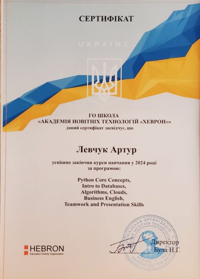 У межах співпраці між кафедрою комп’ютерних наук Кам’янець-Подільського національного університету імені Івана Огієнка та IT-компанією Hebron Soft магістранти спеціальності 122 Комп’ютерні науки Антон Луцик та Артур Левчук успішно завершили навчання в Hebron IT Academy .