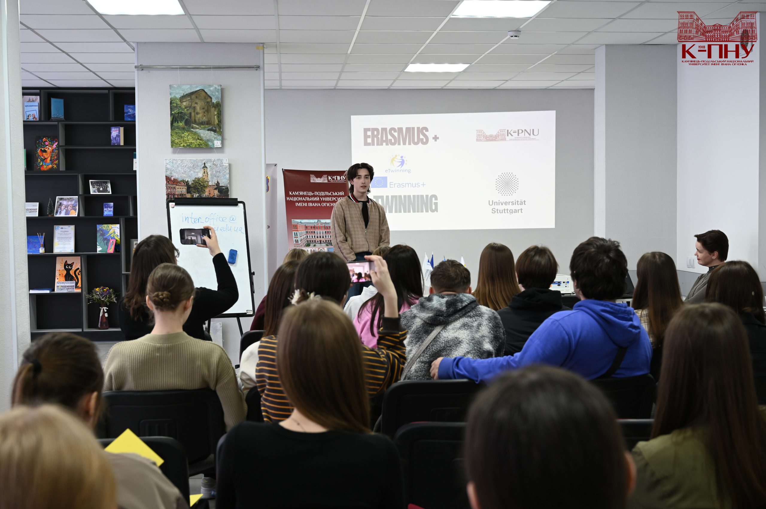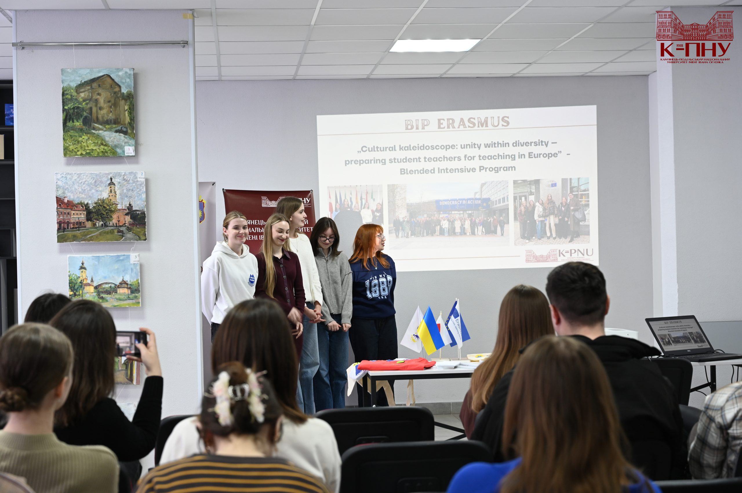 Також студенти презентували результати участі в програмі змішаного інтенсивного обміну (BIP) «Cultural kaleidoscope: unity within diversity – preparing student teachers for teaching in Europe». Своїми враженнями поділилися Катерина Гафіч, Луїза Дорофей, Анастасія Невенгловська, Оксана Нитчин і Анастасія Поліщук.