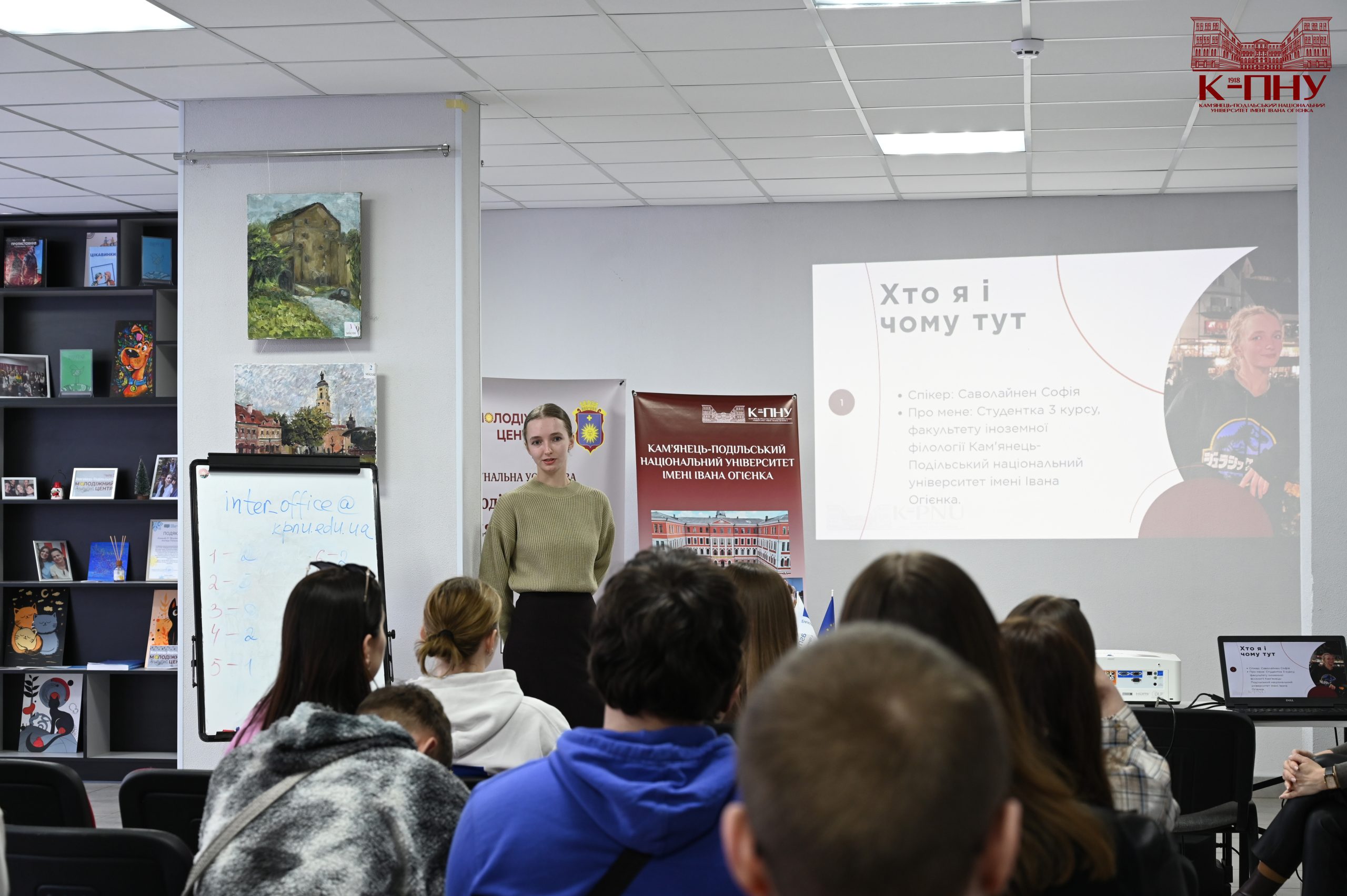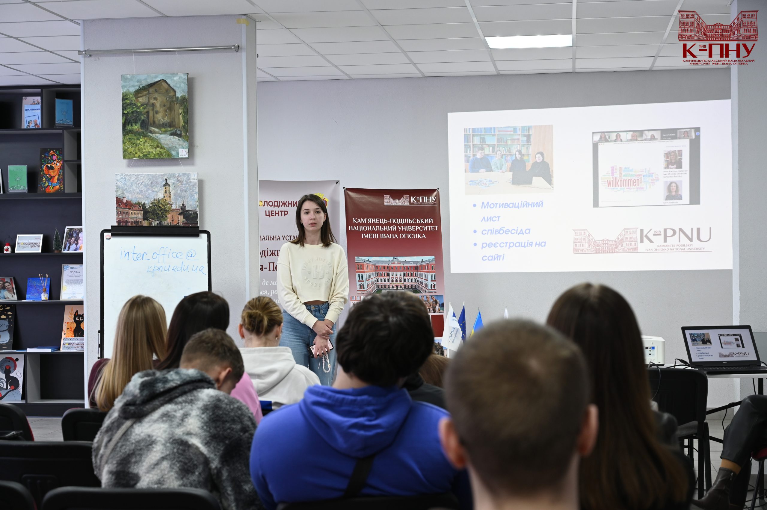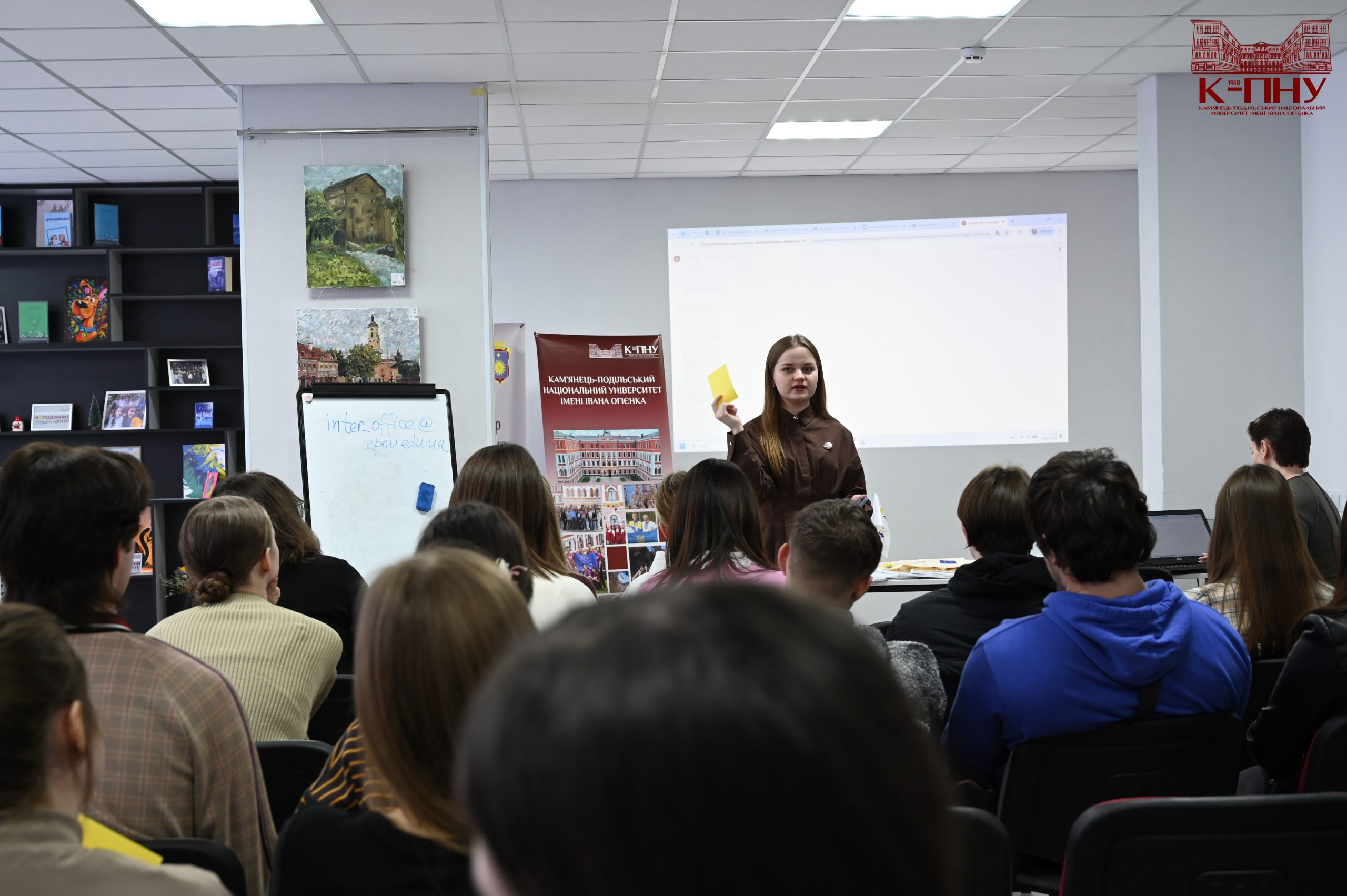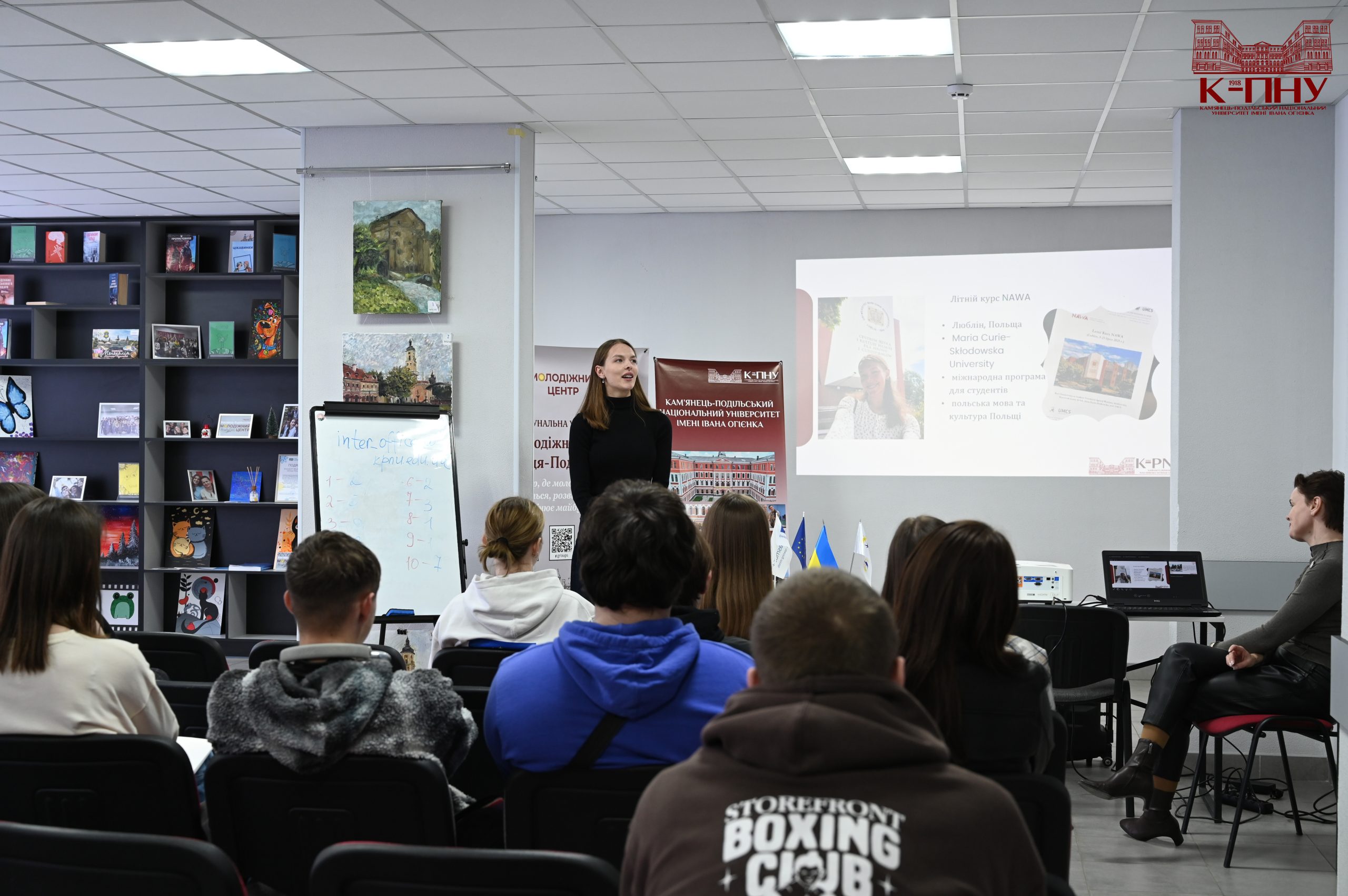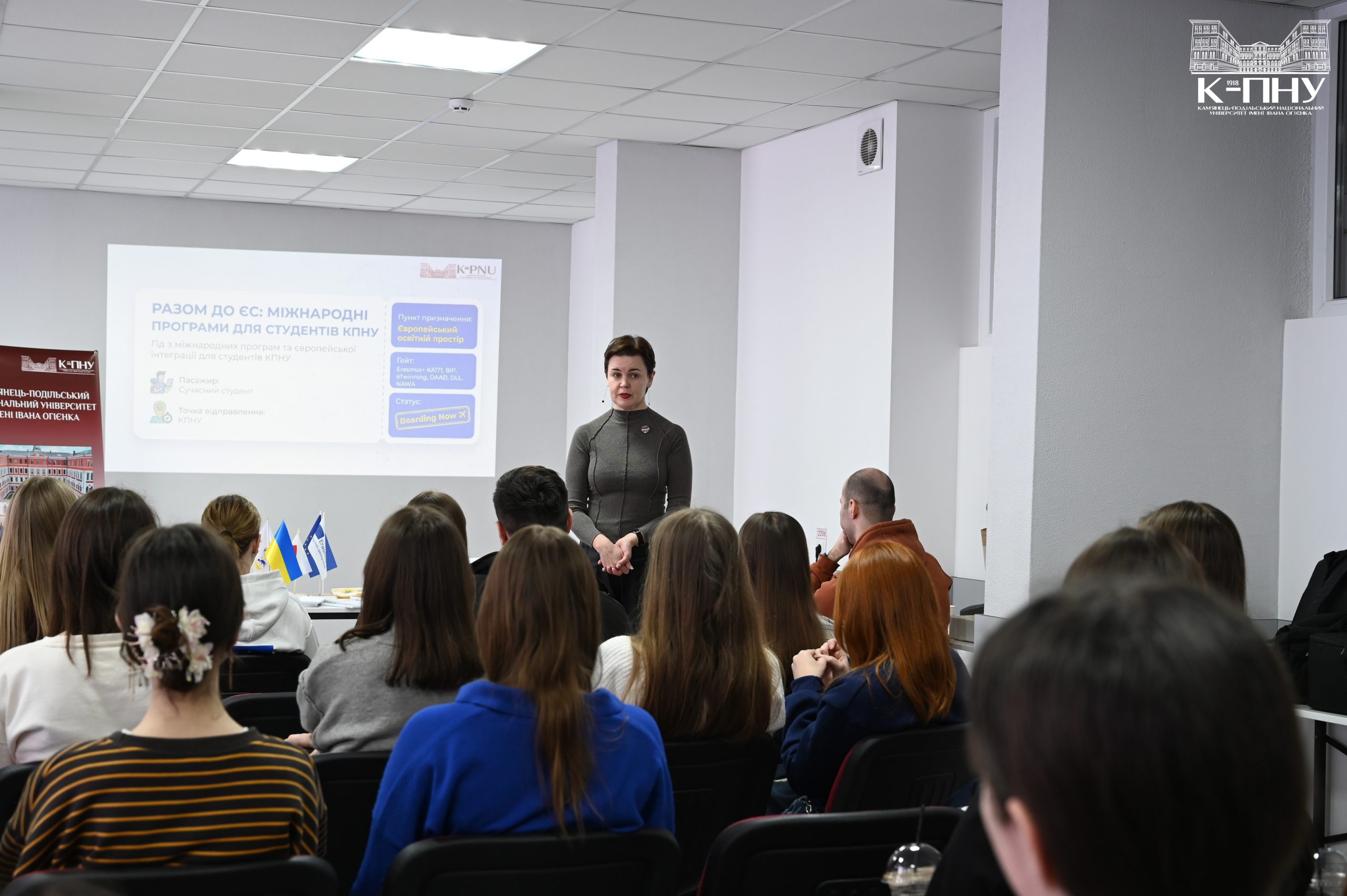 16 березня 2026 року в Молодіжному центрі Кам’янця-Подільського відбувся воркшоп-тренінг «Разом до ЄС: міжнародні програми для здобувачів К-ПНУ», організований відділом міжнародних зв’язків, за участі керівника відділу міжнародних зв’язків, доцента Тетяни Сторчової, провідного фахівця з міжнародної академічної мобільності Катерини Пентюк і провідного фахівця із загально-організаційного забезпечення Анастасії Невенгловської. Зустріч об’єднала близько 30 здобувачів різних факультетів, які дізналися більше про можливості академічної мобільності й міжнародного співробітництва Університету Огієнка.
